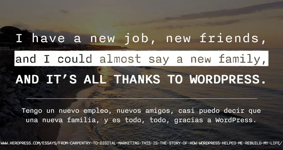 HeroPress: From carpentry to digital marketing, this is the story of how WordPress helped me rebuild my life. – De la carpintería al marketing digital, esta es la historia de cómo WordPress me ayudó a reconstruir mi vida.