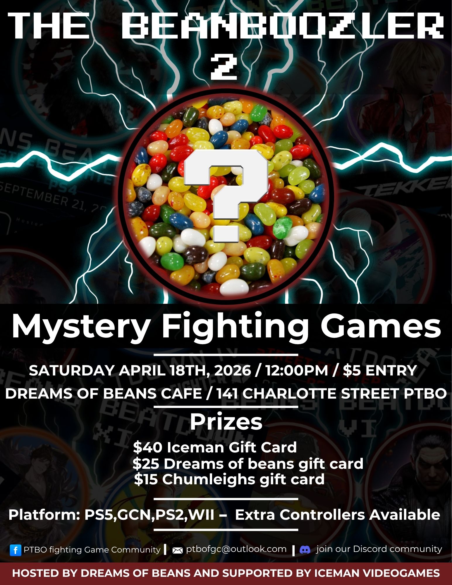 Beans Beatdown is a monthly FGC local which features a variety of games like Street Fighter 6, Guilty Gear Strive, Tekken 8, Granblue Fantasy Versus Rising on an alternating monthly schedule that is voted by members of the community. This month we are hosting our yearly mystery game event!