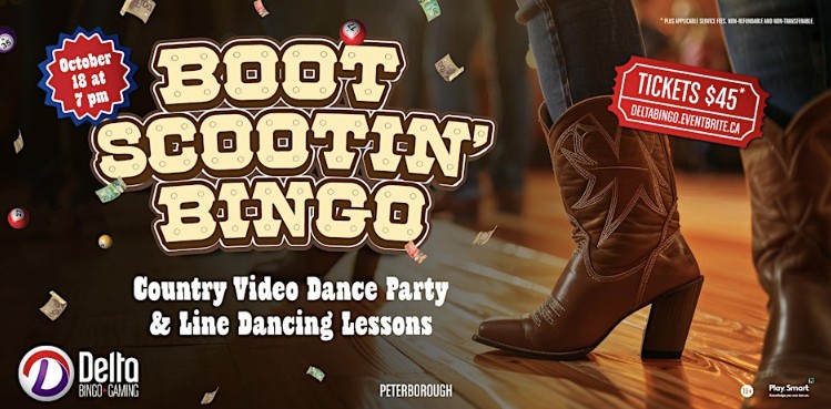 Get ready to kick up your boots and join Delta Bingo & Gaming in Peterborough for their first-ever Country Music Video Dance Party – Boot Scootin’ Bingo!