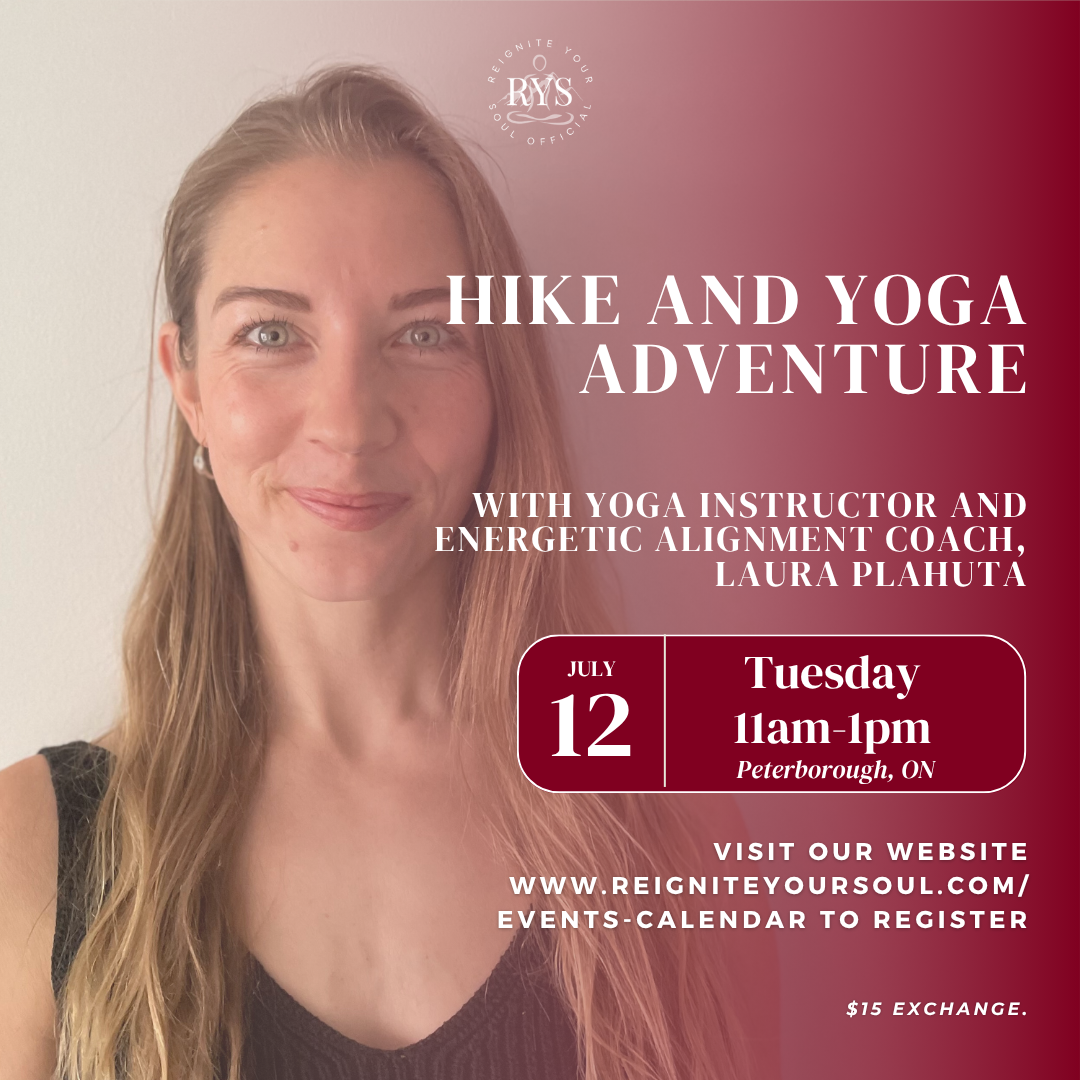 Reconnect with nature and your body during this outdoor Hike + Yoga Adventure in Peterborough. Enjoy a gentle group hike followed by an all-levels yoga class designed to support nervous system regulation, build strength, and create inner calm. Family-friendly, community-oriented, and open to all. Held outdoors, weather permitting.