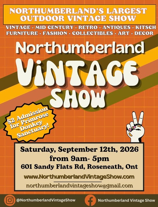 Join us at the 3rd annual Northumberland Vintage Show – Saturday, September 12th, 2026 from 9-5pm for a day of nostalgia and unique finds.