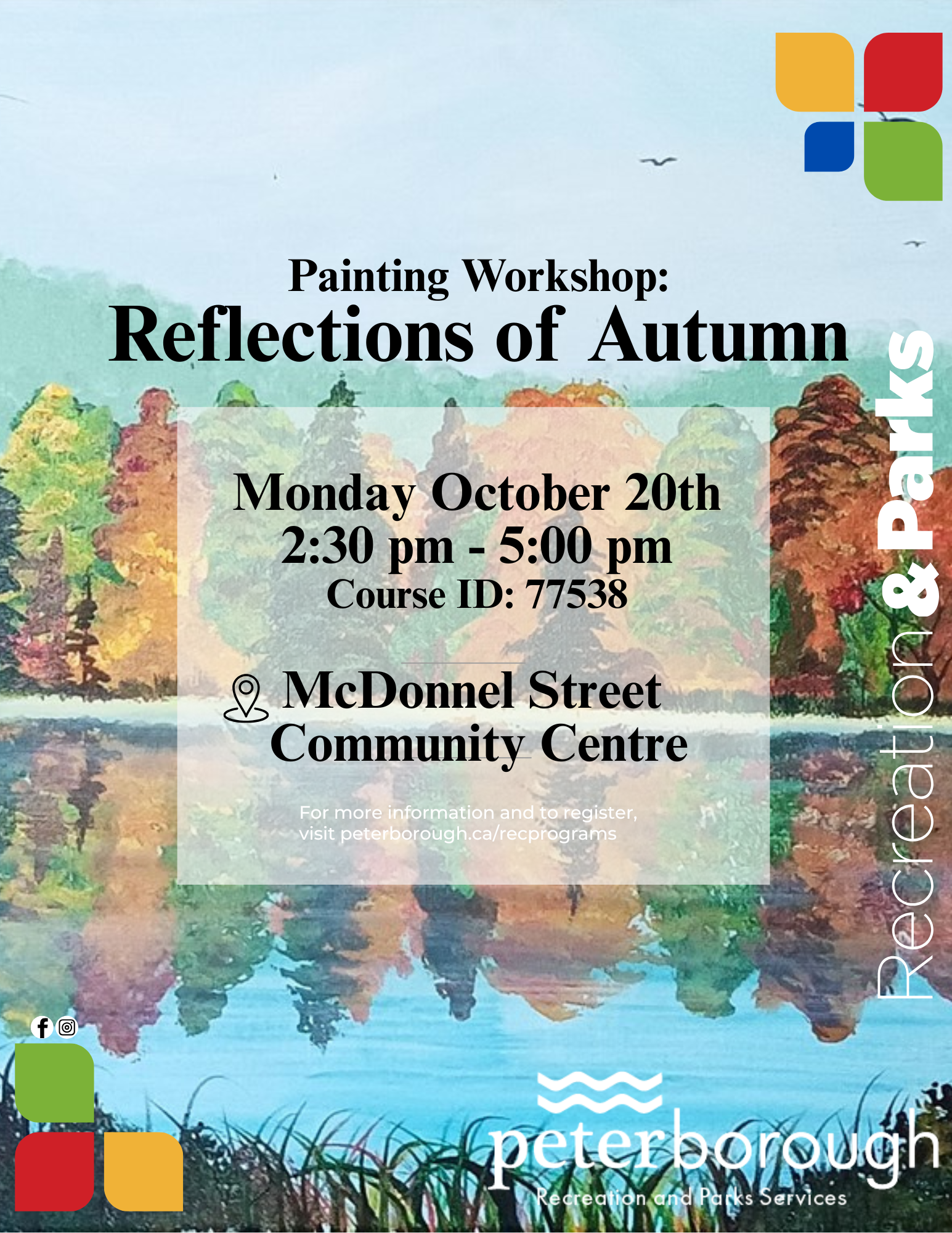 🎨October 20th 2:30pm to 5:00pm | “Reflections of Autumn” | Course ID: 77538