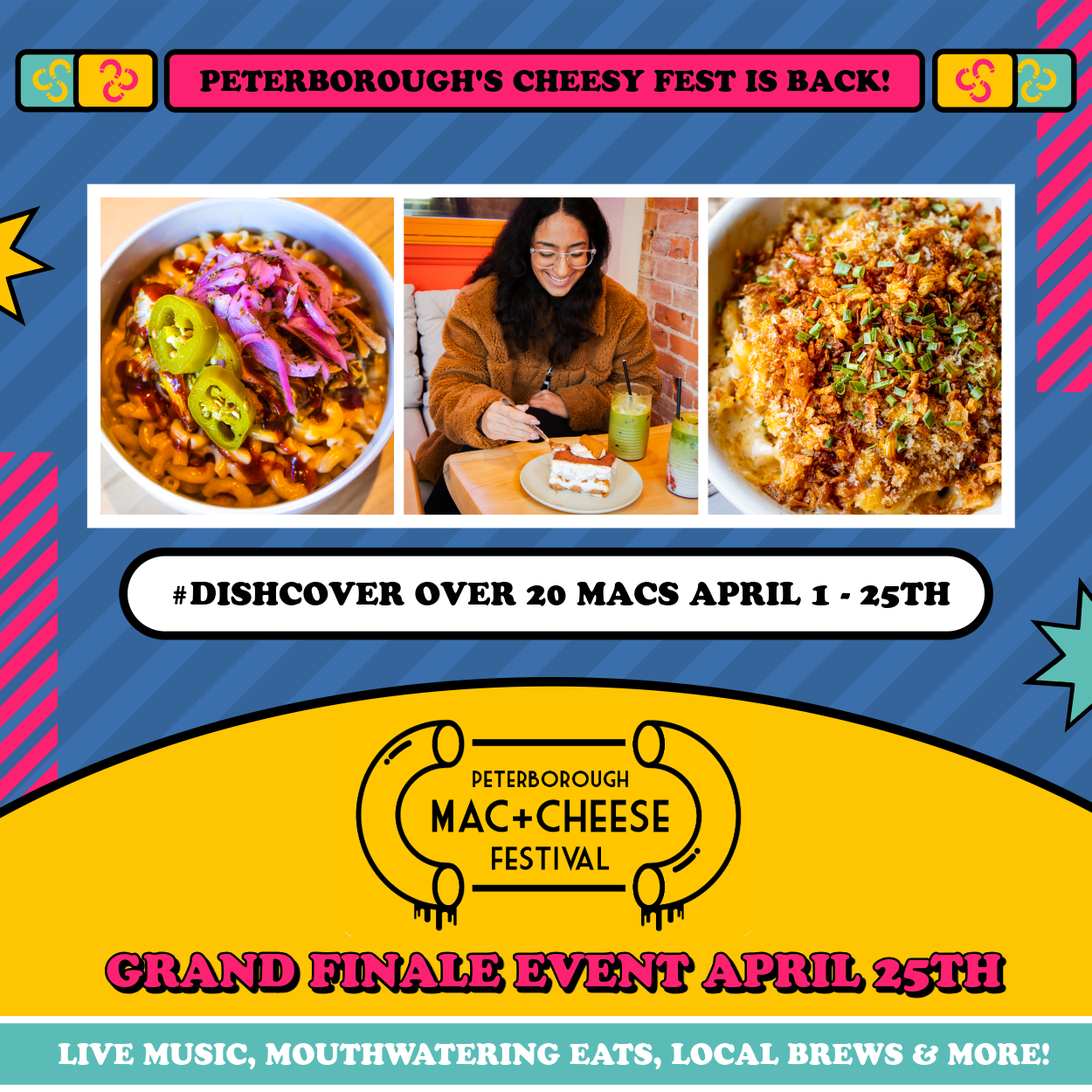 Wrap up a month of melty, cheesy goodness at the Mac & Cheese Festival Grand Finale on April 25 at Quaker Square! This lively, fully licensed event brings the community together to celebrate Peterborough’s most delicious festival, featuring mouthwatering eats, live music, and family-friendly fun.