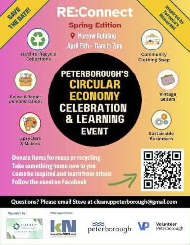 Clean Up Peterborough will host the spring edition of RE:Connect on April 15, 2026, at the Morrow Building. Running from 11 a.m. to 7 p.m., this free, family-friendly event brings together local organizations, makers, and sustainability leaders to showcase practical, creative ways to reduce waste, reuse materials, and rethink how everyday items are used.
